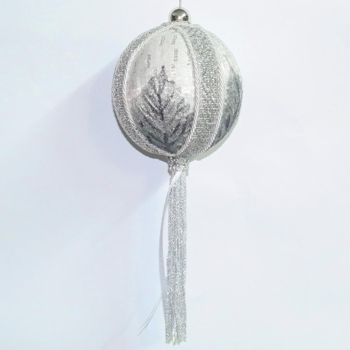 Шарик «Серебро с листиком и подвесом», 10 см, TM Scorpio