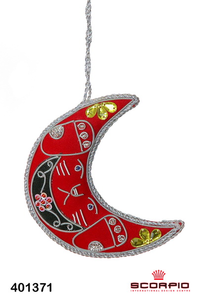 Новогоднее украшение «Месяц», (ткань, вышивка бисером)