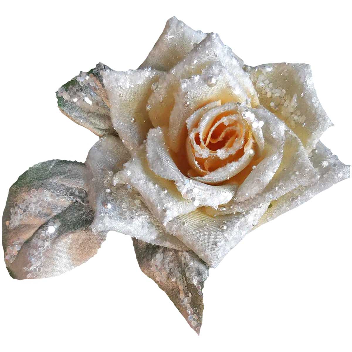 Украшение «Роза заснеженная» на прищепке желтая