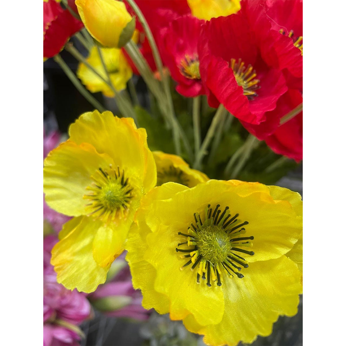 Мак польовий 3 голови 58 см, жовтий, тканина, TM Scorpio
