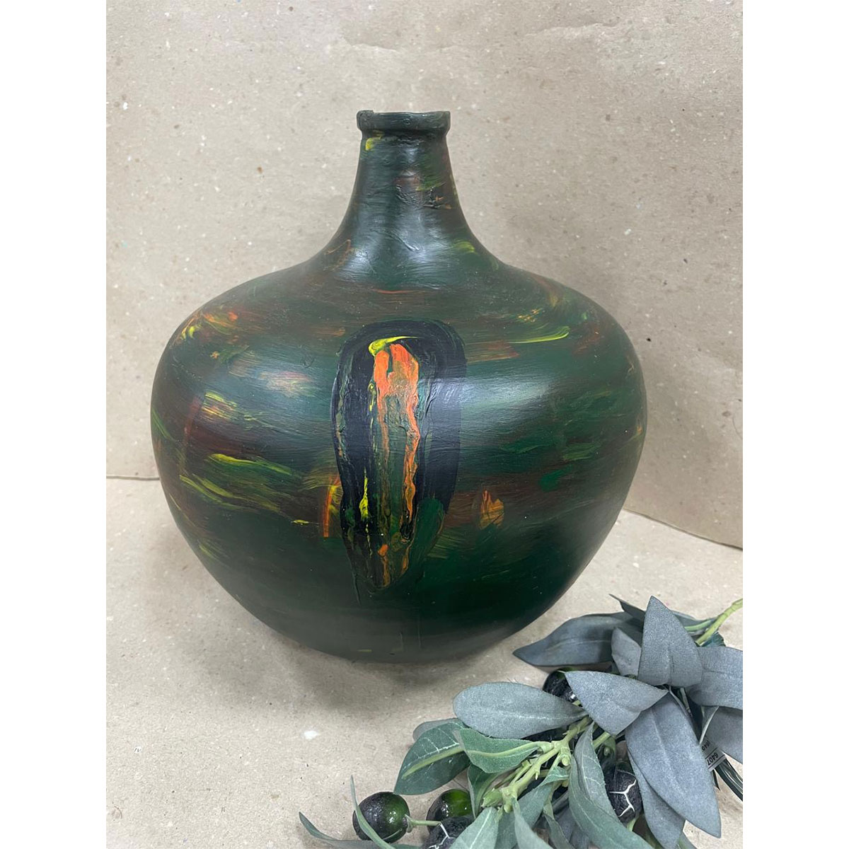 Ваза з бамбуку (лакована, зелена, кругла) - 1158 грн